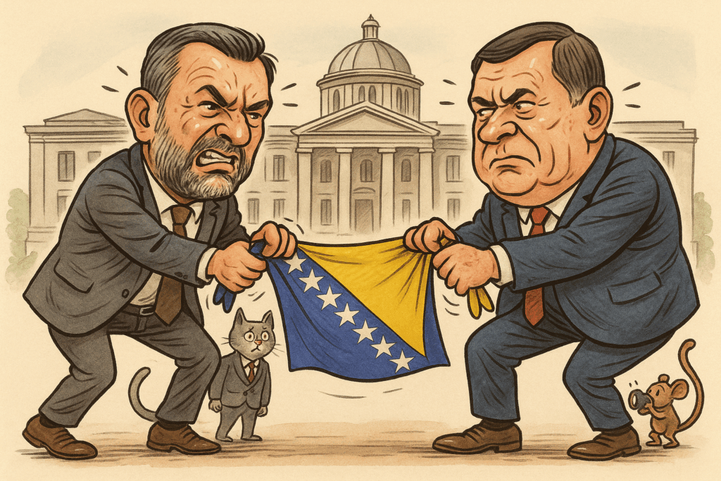 Kad ne možeš ući u Sloveniju, uđi u slovenačku kampanju – to je novi masterplan bivšeg predsjednika RS-a Milorada Dodika, dignut iz pepela sankcija poput feniksa. A kad nemaš nekretnine, neka ih imaju ljudi koji te vole – ili barem oni s upisima u zemljišnim knjigama koji zvuče kao rođaci iz “prijateljske orbite”! Vladavina prava? […]